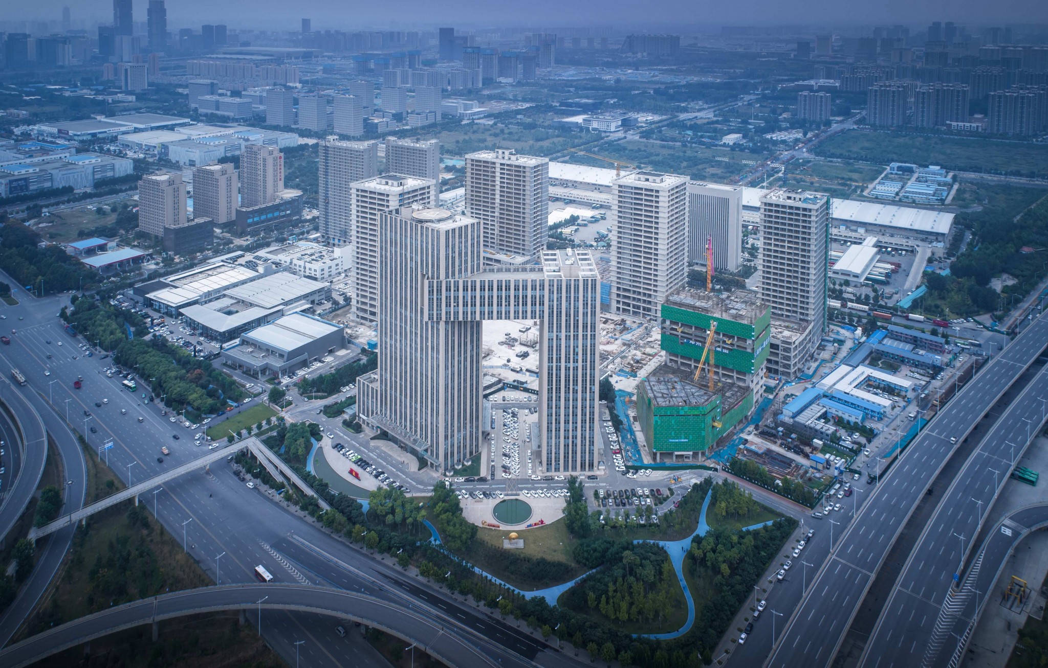 該項(xiàng)目位于鄭州市東四環(huán)和商都路交叉口,建筑面積87629平方米,主體由A塔和B塔組成,A塔樓地上28層,高118米,B塔樓地上23層,高97.2米,兩塔樓一高一低,轉(zhuǎn)角45度連接,宛如一扇被打開的門,被寓為“城市之門”,是鄭州標(biāo)志性建筑。